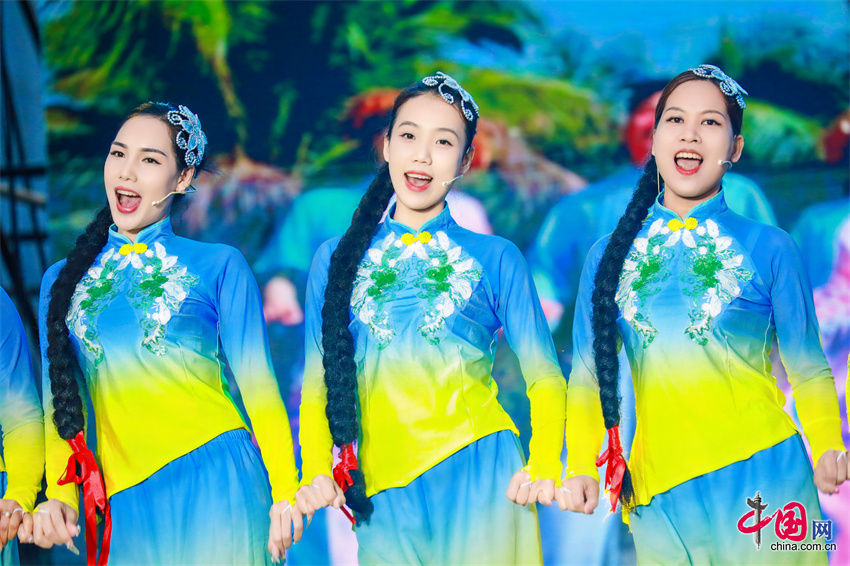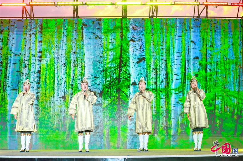 演出以《中华民族一家亲》拉开序幕,第一篇章《北疆回响》以独具特色的民歌展现辽阔壮美的自然画卷,歌声与光影交织,带领观众开启一场沉浸演出的音乐之旅。第二篇章《山河共声》将草原、黄河、长江、农耕等不同文化背景的民歌一一呈现,上演一场跨越地域的音乐对话,让观众感受到中华文化的多样性与共通性。第三篇章《时代和鸣》让原生民歌焕发新生,悠扬的旋律与激昂的吟唱交织,展现民歌在新时代的活力。演出在歌舞《同心共筑中国梦》中达到高潮,为整场演出画上圆满句号。