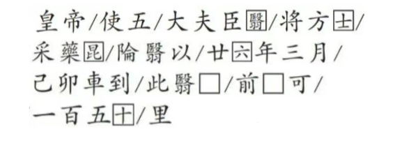 该石刻镌刻字体为典型的秦小篆,所刻内容大意为:秦始皇廿六年,皇帝派遣五大夫翳率领一些方士,乘车前往昆仑山采摘长生不老药。他们于该年三月己卯日到达此地(黄河源头的扎陵湖畔),再前行约一百五十里(到达此行的终点)。