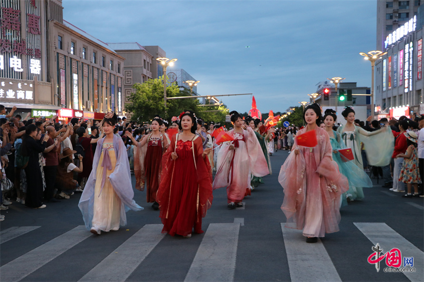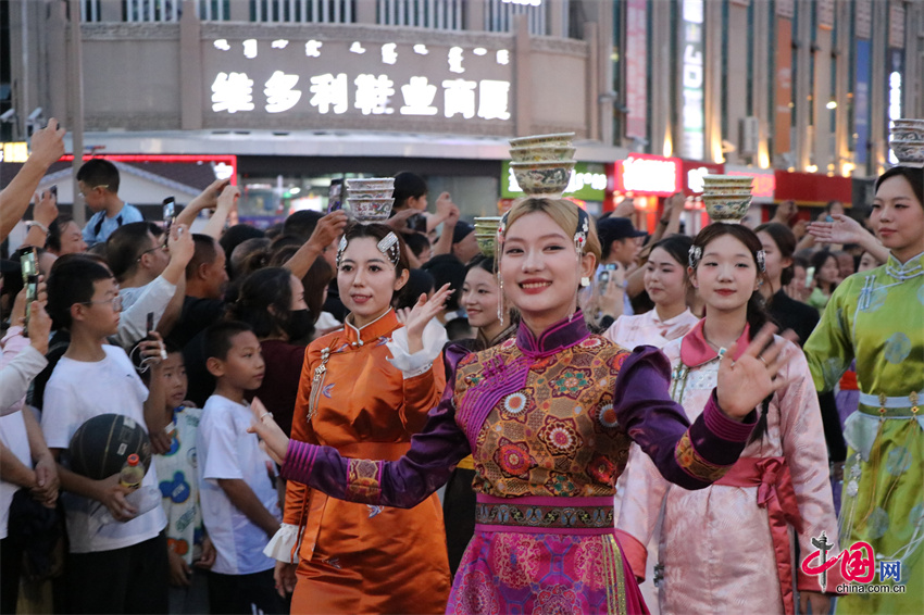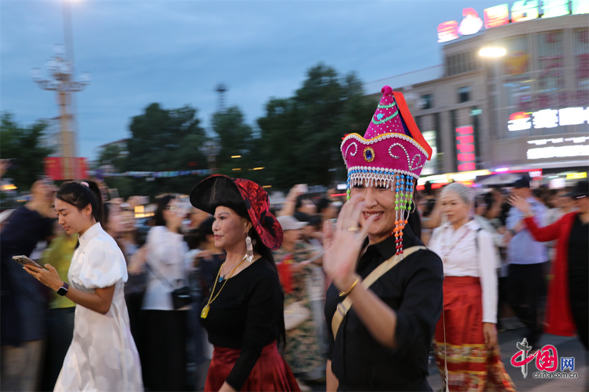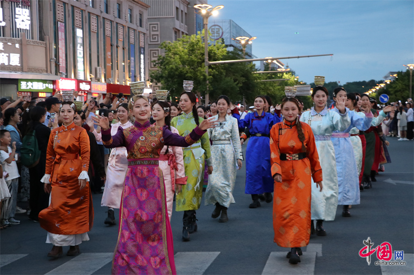 内蒙古自治区第35届草原那达慕开幕前夕,7月18日晚,那达慕举办地内蒙古锡林郭勒盟锡林浩特市举行了盛大的预热巡游。骑警方阵、蒙古族服饰秀、汉服秀、s.p.a剧团的创意表演等精彩演出先后登场,吸引众多市民游客驻足观赏。