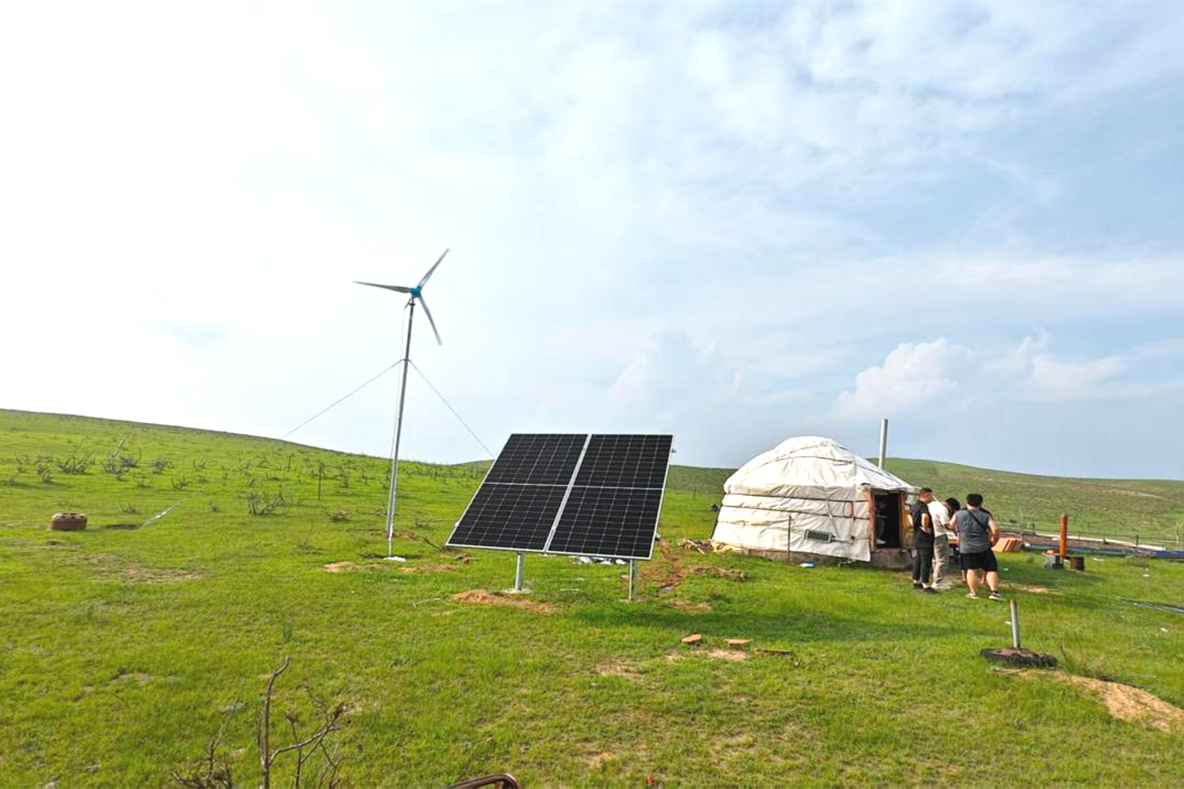 马鞍旁的光伏板还在收集阳光,风机的叶片伴着马蹄声轻轻在转,游牧的脚步踏过千年草场。在草原深处最需要的地方,现代的绿色能源送到了牧民家里。