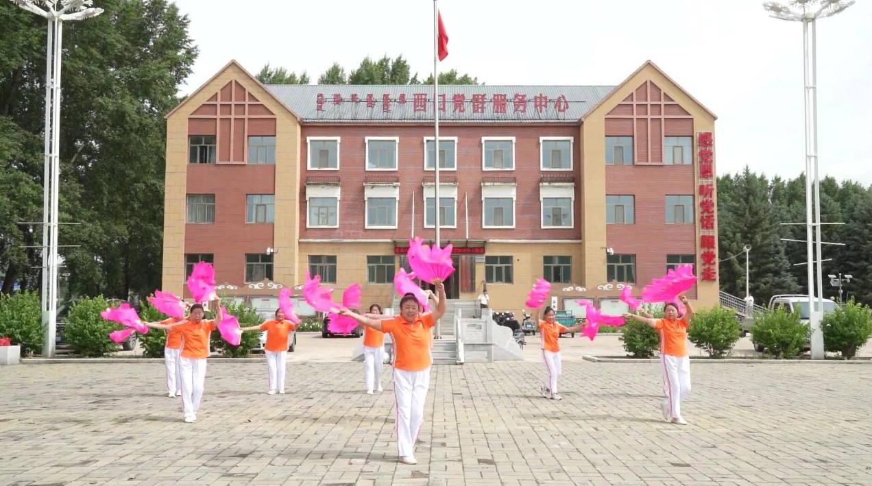 阿尔山市明水河镇小广场上居民欢快地跳着广场舞