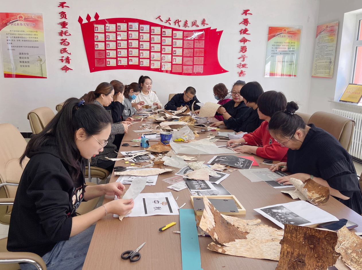 白狼镇林俗村“文化村长”刁金龙传授制作桦树皮画