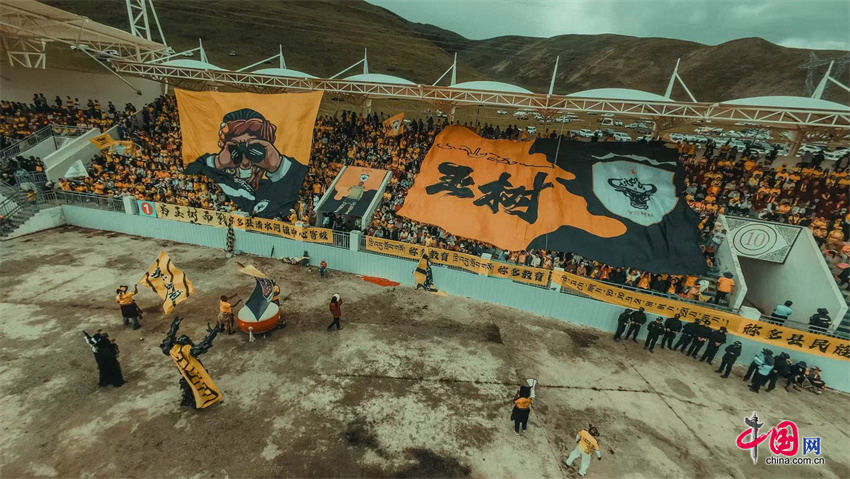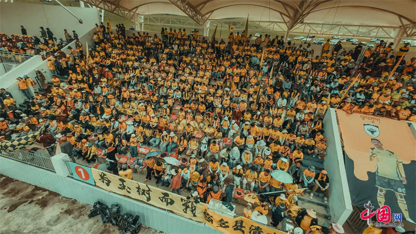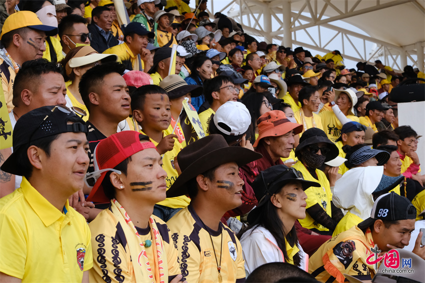 比赛现场,人潮涌动、座无虚席,现场近万名热情的球迷身着球迷服,脸上洋溢着激动的神情,手中挥舞着旗帜,口中高呼着口号,为各自支持的球队加油助威。赛场外,特色农畜产品展销区同样热闹非凡,来自称多县和果洛州的18家企业带来了丰富的农畜产品。
