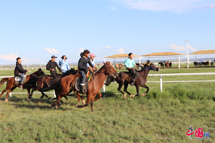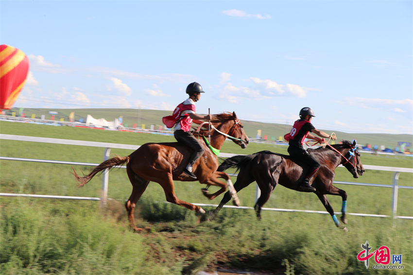 7月20日,内蒙古自治区第35届草原那达慕的赛马比赛在内蒙古锡林郭勒盟锡林浩特市举行,跑马拾哈达、跑马射箭等比赛项目陆续展开。