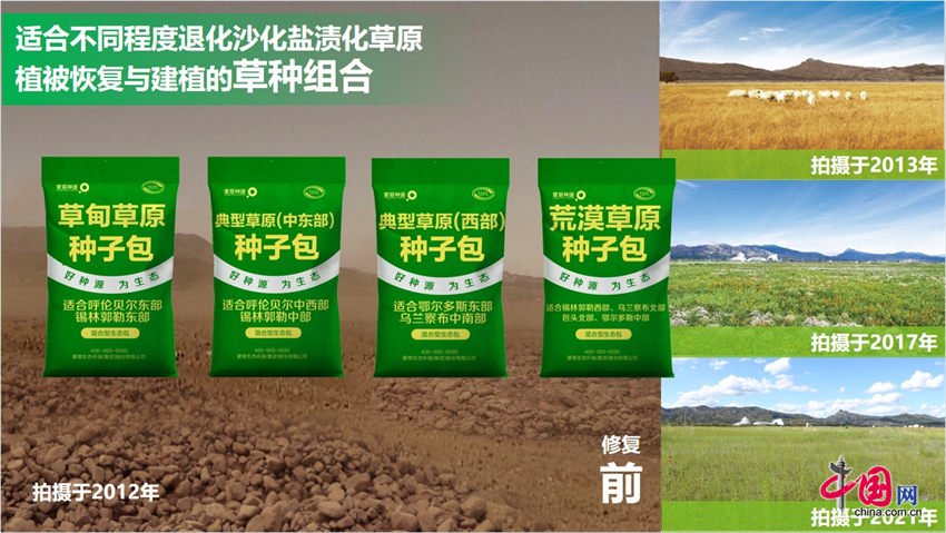 蒙草,研草、种草、管草、用草,做一粒种子、一棵小草,在草原扎根发芽。