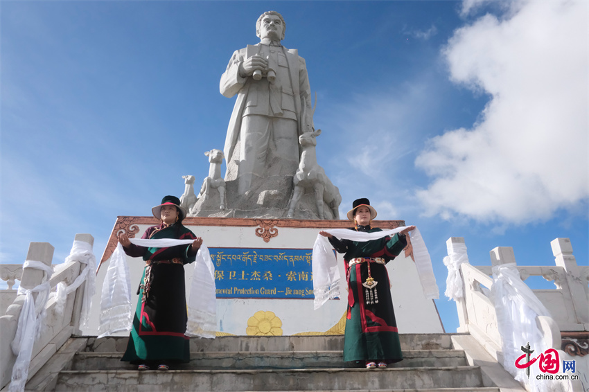 在治多修建杰桑•索南达杰雕像是治多县广大人民群众一直以来的愿望,英雄广场占地面积8.06亩,雕像净高8.06米,寓意治多县的行政面积8.06万平方公里,现为全县民族团结教育基地、生态文明教育基地、爱国主义教育基地及党员示范教育基地。