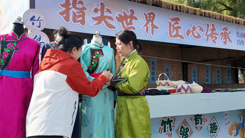 科右前旗柳树川村邻里文化大集上的非遗摊位
