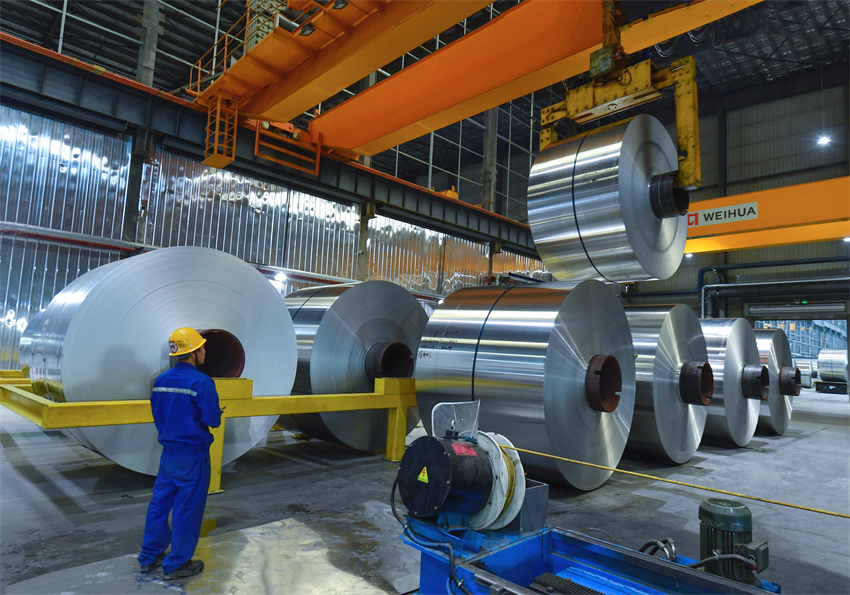 在内蒙古联晟新能源材料有限公司(以下简称联晟新材),铝水经过多道工序,让一片铝箔释放出无限可能:电池箔、空调箔、药用箔、食品箔……这些产品广泛应用于新能源汽车、家用电器、食品医药包装等领域。