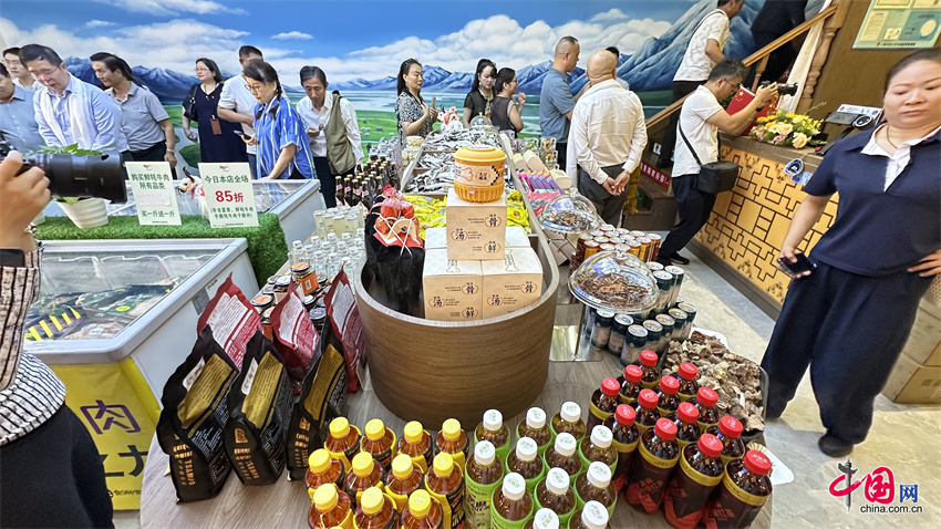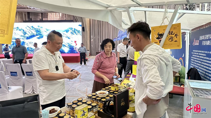 推介会现场设置了绿色有机农畜产品区、非遗文创产品区和互动体验区三大板块,集中展示玉树牦牛肉、牦牛酸奶、扎什加羊肉、高原杂粮等特色农畜产品,藏式饰品、手工艺品等文创产品,以及玉树州精品旅游线路与生态资源,并设置产品试吃、非遗手作体验环节,通过“展示 体验 洽谈”模式,全方位推介玉树绿色有机农畜产品、非遗文创产品和文旅资源。