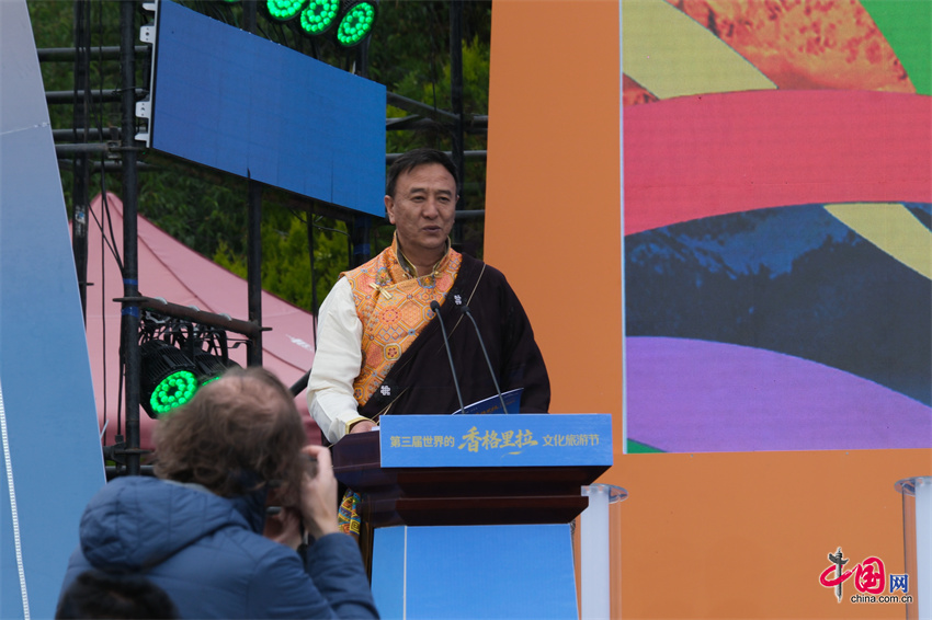 迪庆州委书记罗朝峰出席开幕式并宣布第三届世界的“香格里拉”文化旅游节开幕。迪庆州委副书记、州长张卫东,云南省康旅集团党委副书记、总经理李家龙致辞。开幕式上开展了“今生情定g214”宣传推介,发布了非遗主题旅游线路。《去香格里拉转转》《吉祥家园》等特色民族歌舞表演向嘉宾游客展现了香格里拉的多彩魅力。